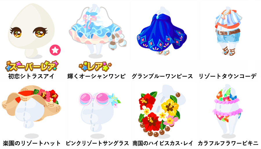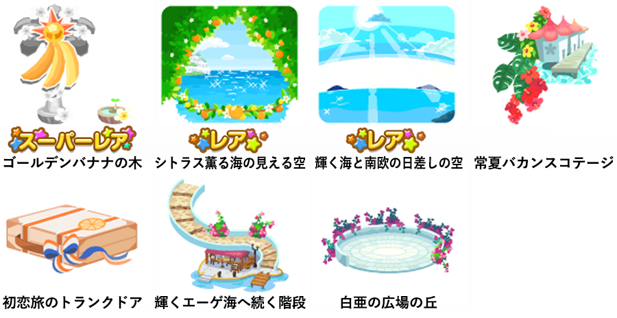過去のガチャからピックアップ ・2013年7月 常夏バケーション ・2014年7月 サマーリゾート ・2015年5月 初恋シトラスジャーニー ・2016年4月 サントリーニに恋して ・2016年7月 トワイライト・リゾート