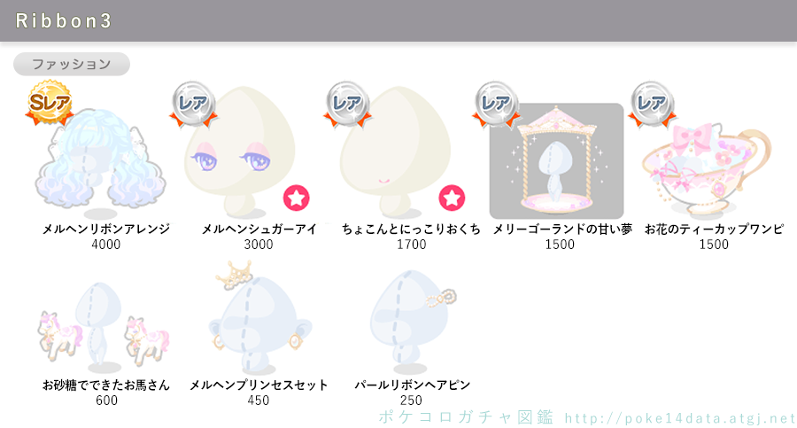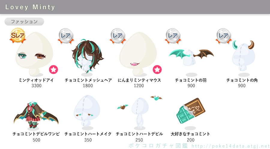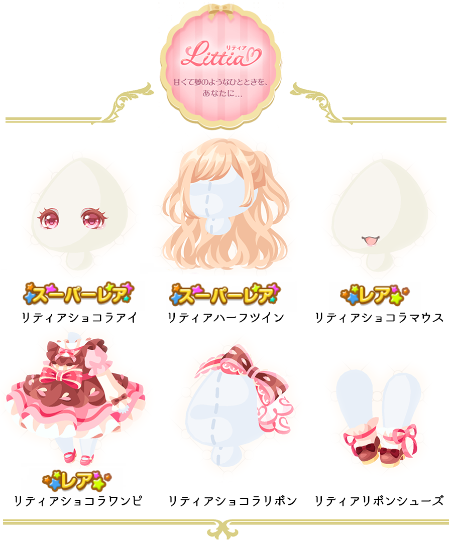 ★リティアショコラアイ(顔パーツ) (4000) ★リティアハーフツイン(4000) ☆リティアショコラマウス(顔パーツ)(3300) ☆リティアショコラワンピ(2500) リティアショコラリボン(1800) リティアリボンシューズ(800)