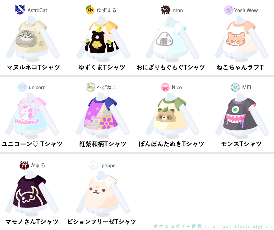 マヌルネコTシャツ(200) ゆずくまTシャツ(200) おにぎりもぐもぐTシャツ(200) ねこちゃんラフT(200) ユニコーン♡ Tシャツ(200) 紅紫和柄Tシャツ(200) ぽんぽんたぬきTシャツ(200) モンスTシャツ(200) マモノさんTシャツ(200) ビションフリーゼTシャツ(200)