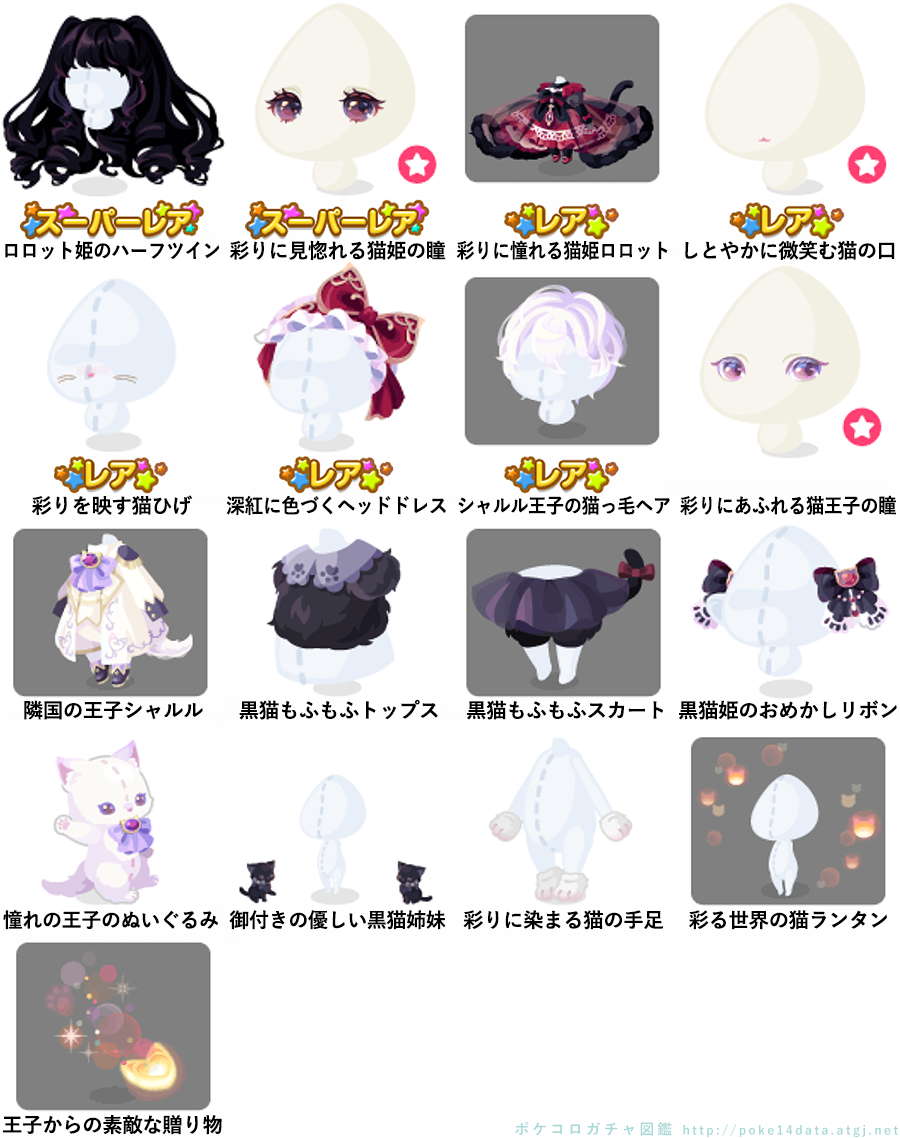 ★ロロット姫のハーフツイン ★彩りに見惚れる猫姫の瞳(顔パーツ) ☆彩りに憧れる猫姫ロロット ☆しとやかに微笑む猫の口(顔パーツ) ☆彩りを映す猫ひげ ☆深紅に色づくヘッドドレス ☆シャルル王子の猫っ毛ヘア 彩りにあふれる猫王子の瞳(顔パーツ) 隣国の王子シャルル 黒猫もふもふトップス 黒猫もふもふスカート 黒猫姫のおめかしリボン 憧れの王子のぬいぐるみ 御付きの優しい黒猫姉妹 彩りに染まる猫の手足 彩る世界の猫ランタン 王子からの素敵な贈り物