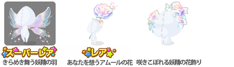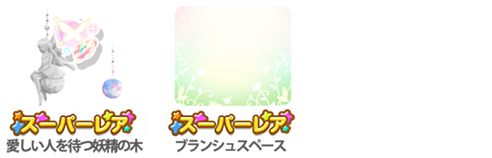 ★きらめき舞う妖精の羽 ファッションSR② 小物SR② ☆あなたを想うアムールの花 想い人を待つ妖精の森の床② あなたとの想い出の鳥かご② 光り輝くエクランの星② 想い人を待つ妖精の森の空② シュシュシニョンヘア② 想い人を待つ愛しき妖精② 華やかに舞うフルール妖精② 光輝く妖精の羽根② 想い出の少年の瞳② 華やぐシフォンフレーム② 咲きこぼれる妖精の花飾り 同種インテリアNアイテム③ 同種コロニーNアイテム③ 同種ファッションNアイテム③ 同種小物Nアイテム③