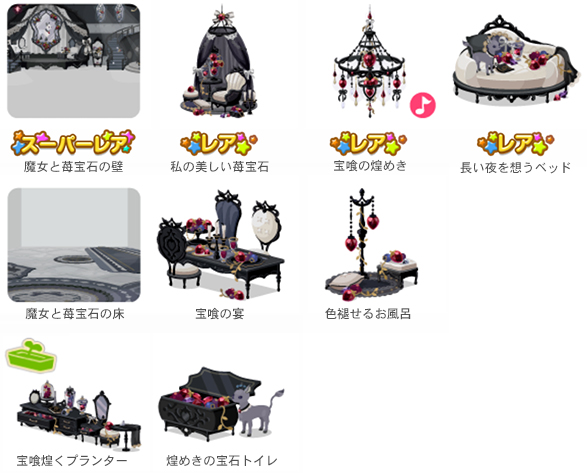 ★魔女と苺宝石の壁 ☆私の美しい苺宝石 ☆宝喰の煌めき(ネイロアイテム) ☆長い夜を想うベッド 魔女と苺宝石の床 宝喰の宴 色褪せるお風呂 宝喰煌くプランター 煌めきの宝石トイレ