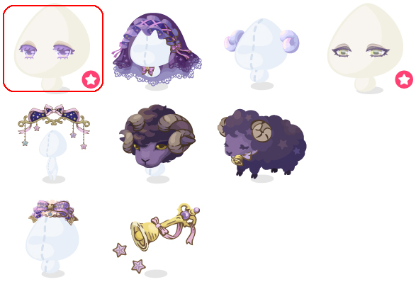 ★メリィルルのゆめみの目(顔パーツ) ☆夜空色のナイトベール ☆メリィルルのひつじ角 ☆ゆめへみちびく羊の目(顔パーツ) さめないゆめの夜空 くろひつじの瞬き ゆめへのおともの子ひつじ ルルのおおきなリボン 星ふるメリィベル