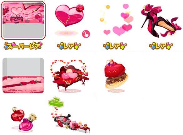 ★小悪魔バレンタインの壁 ☆ルージュ・ラブポーション(アクションアイテム) ☆ラブポーションの魔法 ☆恋するハイヒール 小悪魔バレンタインの床 甘い甘いソファベッド グラサージュケーキ ハートマニキュアトイレ 夢見るメイクプランター