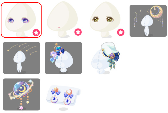 ★月光のルナマンディスアイ(顔パーツ) ☆運命を告げる口(顔パーツ) ☆好奇心のルナプエルアイ(顔パーツ) ☆月光のランプカテーナ 月へと続く流星群 ルナマンディスリボン 月詠みのベレー 運命を紡ぐステラオーブ ルナステラピアス
