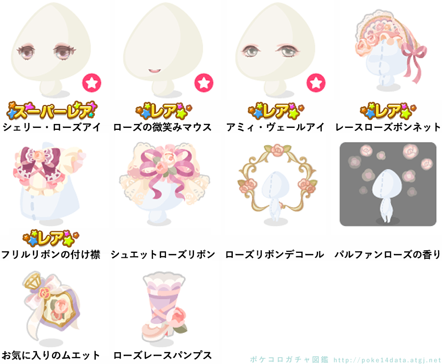 ★シェリー・ローズアイ(顔パーツ) ☆ローズの微笑みマウス(顔パーツ) ☆アミィ・ヴェールアイ(顔パーツ) ☆レースローズボンネット ☆フリルリボンの付け襟 シュエットローズリボン ローズリボンデコール パルファンローズの香り お気に入りのムエット ローズレースパンプス
