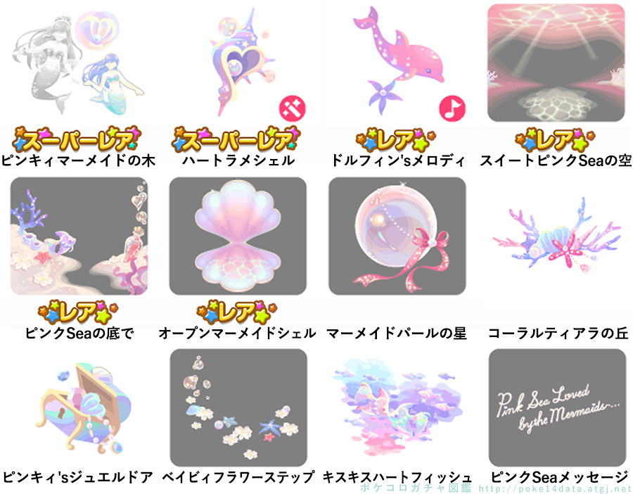 ★ピンキィマーメイドの木 No.1405 ピンキィタピオカジュース ベイビィシェルの実 ★ハートラメシェル(フィルターアイテム) ☆ドルフィン'sメロディ(Cネイロアイテム) ☆スイートピンクSeaの空 ☆ピンクSeaの底で ☆オープンマーメイドシェル マーメイドパールの星 コーラルティアラの丘 ピンキィ'sジュエルドア ベイビィフラワーステップ キスキスハートフィッシュ ピンクSeaメッセージ