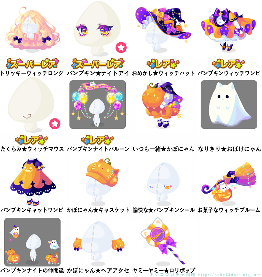 ★トリッキーウィッチロング ★パンプキン★ナイトアイ(顔パーツ) ☆おめかし★ウィッチハット ☆パンプキンウィッチワンピ ☆たくらみ★ウィッチマウス(顔パーツ) ☆パンプキンナイトバルーン いつも一緒★かぼにゃん なりきり★おばけにゃん パンプキンキャットワンピ かぼにゃん★キャスケット 愉快な★パンプキンシール お菓子なウィッチブルーム パンプキンナイトの仲間達 かぼにゃん★ヘアアクセ ヤミーヤミー★ロリポップ