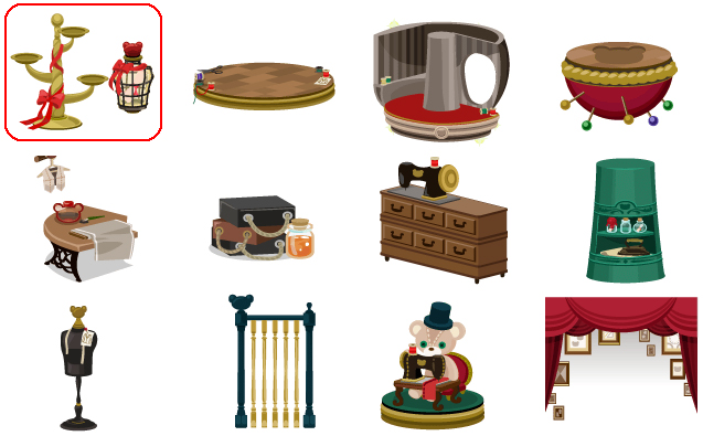 ★トルソーボトルツリー 洋裁道具の丘 仕立屋の星 ピンクッションのステップ 仕立屋の作業机 かくれんぼはちみつチェア アンティークミシン台 仕立屋の棚 メンズトルソー 仕立屋のフェンス 仕立屋クマ 額縁の揺れる空
