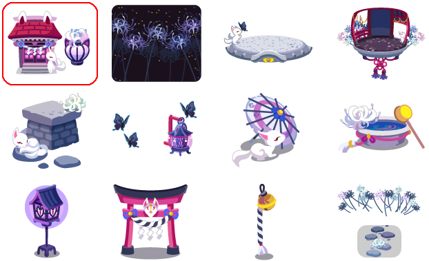 ★狐のお社の木 曼珠沙華咲き乱れる空 蝶と戯れる狐の丘 狐と曼珠沙華の星 狐の眠る足場 蝶が舞う灯篭 狐と番傘 曼珠沙華と柄杓 怪しく灯る灯篭 佇む狐面と鳥居 微かに揺れる本坪鈴 曼珠沙華と石畳階段