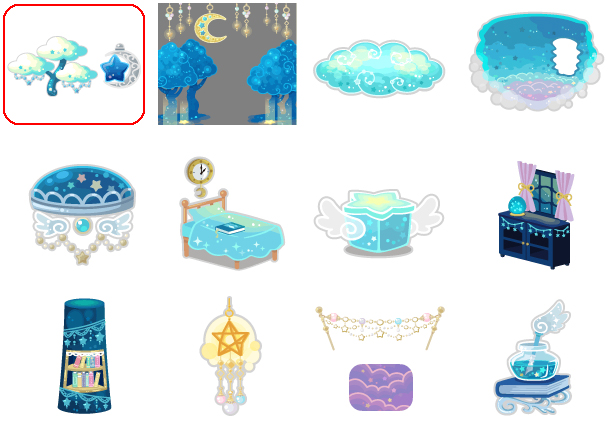 ★ムーンライトツリー 星屑ジュエルガーランド 月明かりの雲の丘 月明かりの部屋の星 星屑きらめくステップ きらきら夢ごこちベッド 星屑ウィングチェア 星屑ガーランドチェスト 星屑レースの本棚 スターライトガーランド 星屑ジュエルフェンス 星屑で紡ぐ日記帳