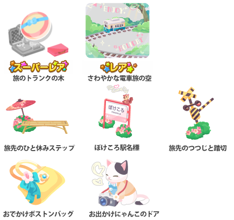 ★旅のトランクの木 No.985 旅日和のサンドイッチ 旅日和の実 ☆さわやかな電車旅の空 さわやかな電車旅の空 旅先のひと休みステップ ぽけころ駅名標 旅先のつつじと踏切 お出かけにゃんこのドア おでかけボストンバッグ