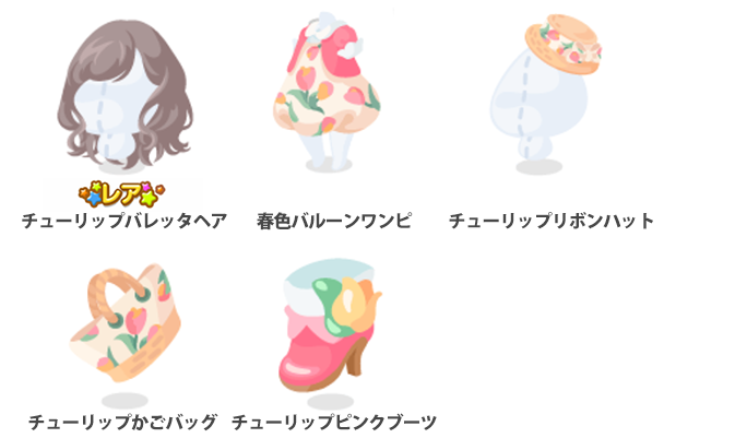 ☆チューリップバレッタヘア 春色バルーンワンピ チューリップリボンハット チューリップかごバッグ チューリップピンクブーツ