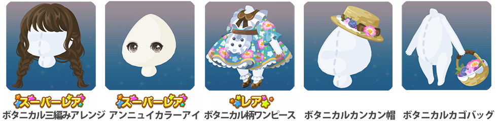 ★ボタニカル三編みアレンジ ★アンニュイカラーアイ(顔パーツ) ☆ボタニカル柄ワンピース ボタニカルカンカン帽 ボタニカルカゴバッグ