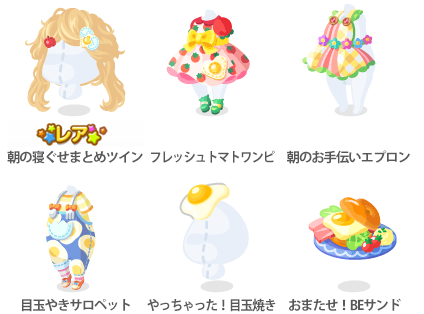 ☆朝の寝ぐせまとめツイン フレッシュトマトワンピ 朝のお手伝いエプロン 目玉やきサロペット やっちゃった!目玉焼き おまたせ!BEサンド