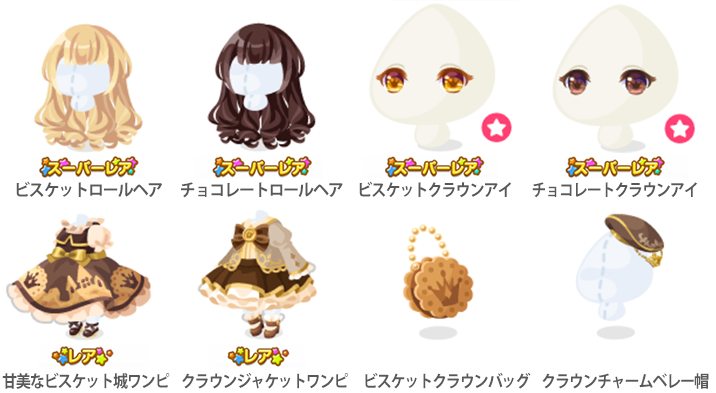 ★ビスケットロールヘア ★チョコレートロールヘア ★ビスケットクラウンアイ(顔パーツ) ★チョコレートクラウンアイ(顔パーツ) ☆甘美なビスケット城ワンピ ☆クラウンジャケットワンピ ビスケットクラウンバッグ クラウンチャームベレー帽