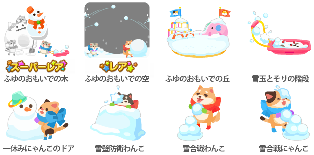 ★ふゆのおもいでの木 No.932 雪原ゆきだるまグラタン ふゆのおもいでの実 ☆ふゆのおもいでの空 ふゆのおもいでの丘 雪玉とそりの階段 一休みにゃんこのドア 雪壁防衛わんこ 雪合戦わんこ 雪合戦にゃんこ