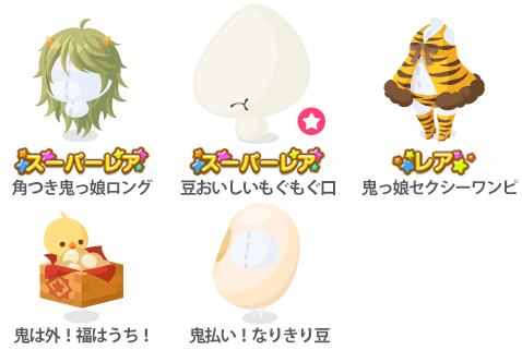 ★角つき鬼っ娘ロング ★豆おいしいもぐもぐ口(顔パーツ) ☆鬼っ娘セクシーワンピ 鬼は外!福はうち! 鬼払い!なりきり豆