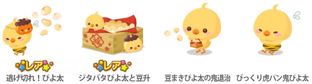 ☆逃げ切れ!ぴよ太 ☆ジタバタぴよ太と豆升 豆まきぴよ太の鬼退治 びっくり虎パン鬼ぴよ太