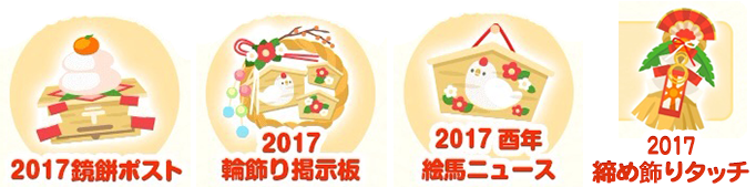 2017鏡餅ポスト 2017輪飾り掲示板 2017酉年絵馬ニュース 2017締め飾りタッチ