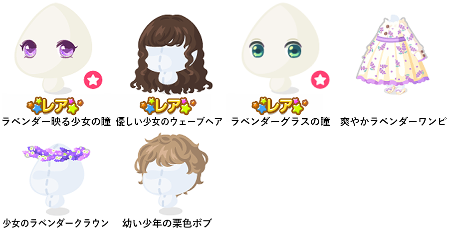 ☆ラベンダー映る少女の瞳(顔パーツ) ☆優しい少女のウェーブヘア ☆ラベンダーグラスの瞳(顔パーツ) 爽やかラベンダーワンピ 少女のラベンダークラウン 幼い少年の栗色ボブ