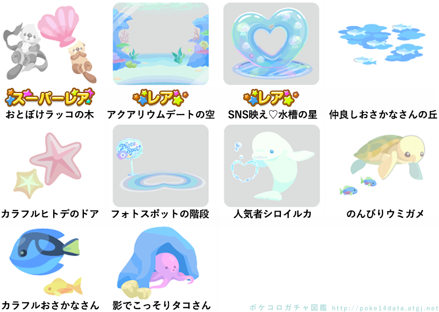 ★おとぼけラッコの木 No.1343 ラッコシーフードシチュー カラフルハートシェルの実 ☆アクアリウムデートの空 ☆SNS映え♡水槽の星 仲良しおさかなさんの丘 カラフルヒトデのドア フォトスポットの階段 人気者シロイルカ のんびりウミガメ カラフルおさかなさん 影でこっそりタコさん