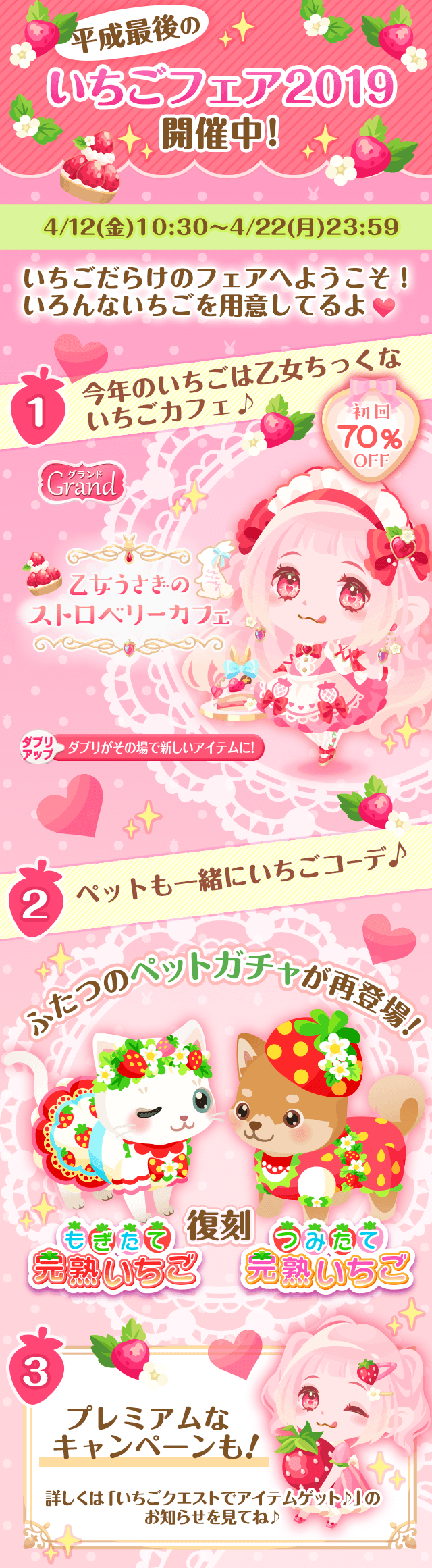 ・2019.4.12〜4.22『もぎたて完熟いちご』 ・2019.4.12〜4.22『つみたて完熟いちご』