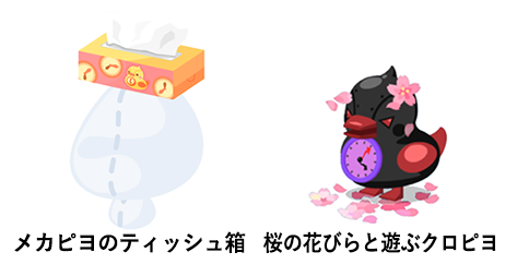 メカピヨのティッシュ箱(F) 桜の花びらと遊ぶクロピヨ(I)