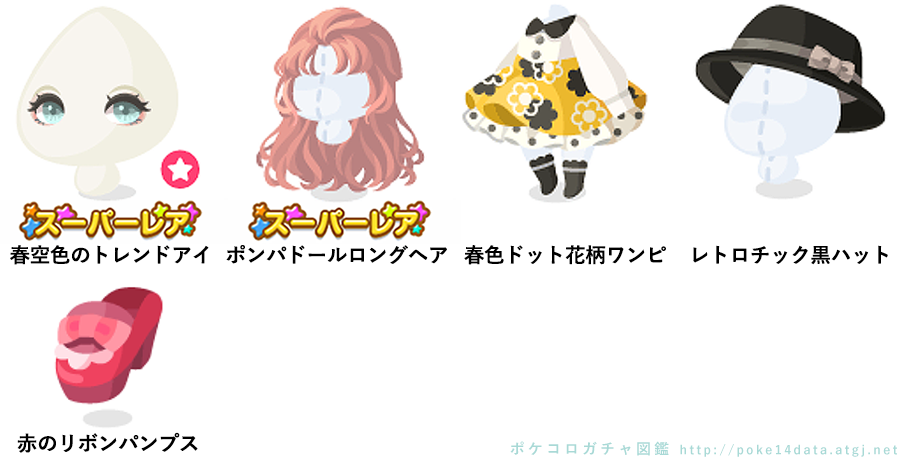 ★春空色のトレンドアイ(顔パーツ) ★ポンパドールロングヘア 春色ドット花柄ワンピ レトロチック黒ハット 赤のリボンパンプス