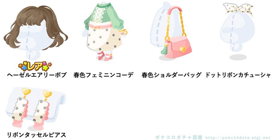 ☆ヘーゼルエアリーボブ 春色フェミニンコーデ 春色ショルダーバッグ ドットリボンカチューシャ リボンタッセルピアス