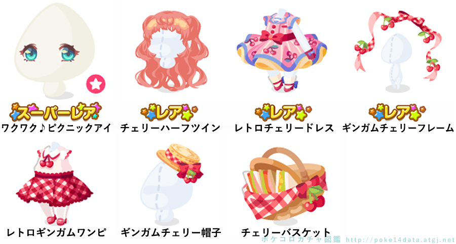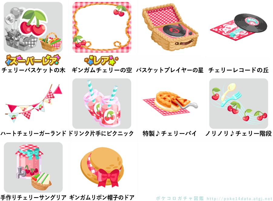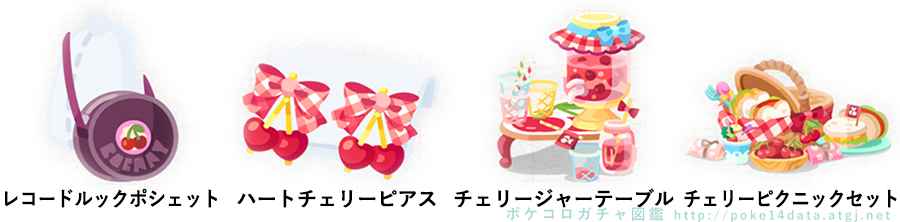 レコードルックポシェット(F) ハートチェリーピアス(F) チェリージャーテーブル(I) チェリーピクニックセット(I)