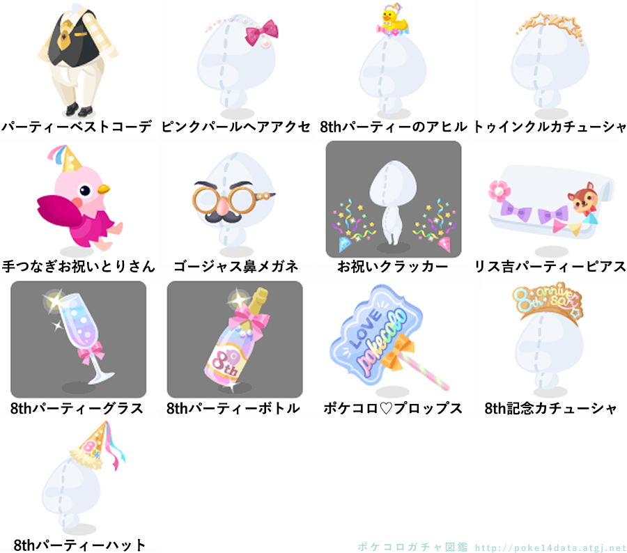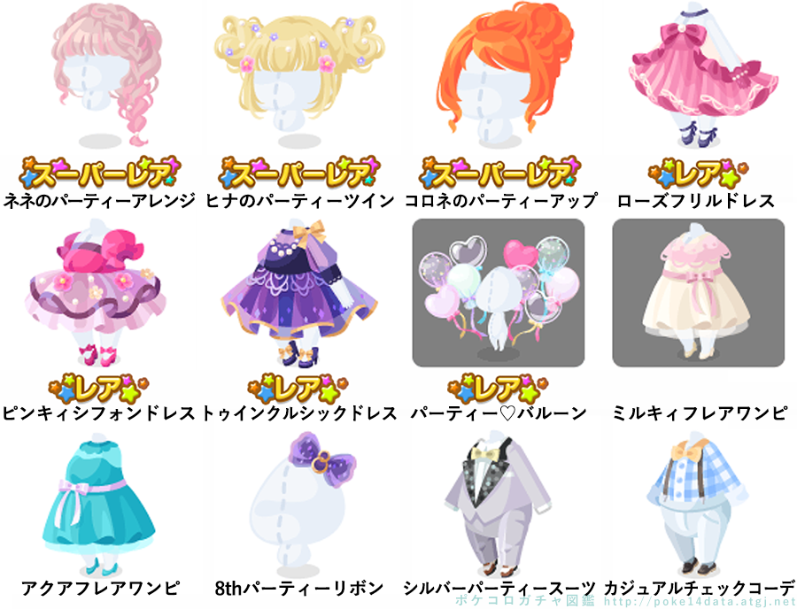 ★ネネのパーティーアレンジ ★ヒナのパーティーツイン ★コロネのパーティーアップ ☆ローズフリルドレス ☆ピンキィシフォンドレス ☆トゥインクルシックドレス ☆パーティー♡バルーン ミルキィフレアワンピ アクアフレアワンピ 8thパーティーリボン シルバーパーティースーツ カジュアルチェックコーデ パーティーベストコーデ ピンクパールヘアアクセ 8thパーティーのアヒル トゥインクルカチューシャ 手つなぎお祝いとりさん ゴージャス鼻メガネ お祝いクラッカー リス吉パーティーピアス 8thパーティーグラス 8thパーティーボトル ポケコロ♡プロップス 8th記念カチューシャ 8thパーティーハット