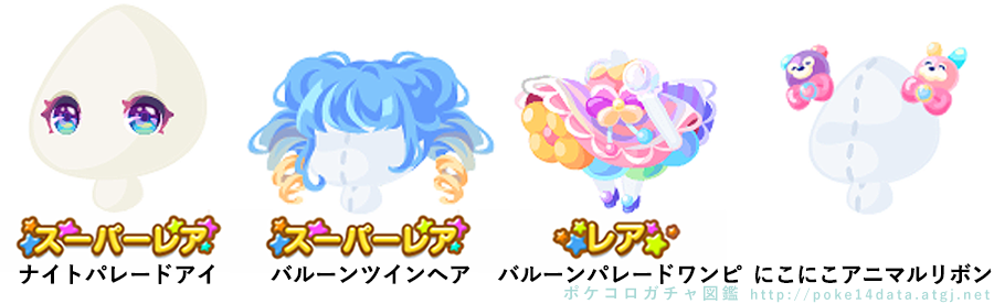 ★ナイトパレードアイ(顔パーツ) ★バルーンツインヘア ☆バルーンパレードワンピ にこにこアニマルリボン