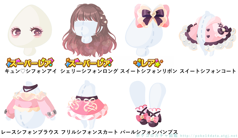 ★キュン♡シフォンアイ(顔パーツ) ★シェリーシフォンロング ☆スイートシフォンリボン スイートシフォンコート レースシフォンブラウス フリルシフォンスカート パールシフォンパンプス