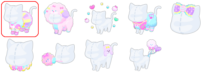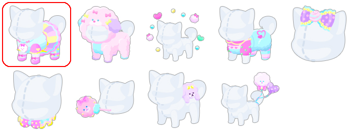 ★キャンディパステルコーデ ☆ふわもふキャンディパフドッグ ☆ほわほわキャンディパフ もふもふサロペット おしゃれキャンディリボン パステルフリルの首輪 自慢のふんわり綿あめ いつでも一緒マスコット もふもふ綿あめバルーン