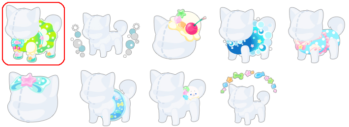 ★クリームソーダワンピ ☆シュワシュワバブルソーダ ☆バニラチェリーハット シュワシュワバブルワンピ フリフリソーダ柄水着 ぷるぷる☆ゼリーリボン ぷるぷる☆ゼリー浮き輪 まったりアザラシゼリー ぷるぷる☆ゼリーアーチ