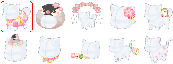 ★春色さくらワンピース ☆なりきり桜文鳥ヘッド ☆花びら舞い散る桜アーチ 桜の花飾り まったり桜もち文鳥 お花見さくら文鳥 桜柄リボン 自慢の文鳥おだんご 文鳥とおでかけ巾着 春爛漫さくらシール
