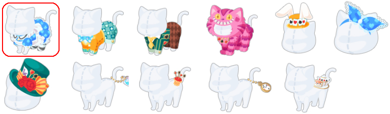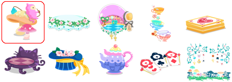 ★にゃんこむしのキノコ 白バラのテーブルクロス 不思議な部屋の小瓶 ティーカップなステップ ハートのトランプベッド 不思議な猫の椅子 帽子屋の白バラトイレ 不思議な三つ口ポット ☆バラ園のトランプ兵 ☆不思議な森の入り口