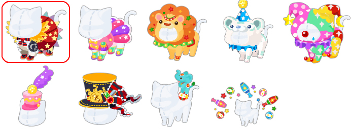★にゃんだふる団長 魅惑のショーガール まるかじりサーカスライオン まるかじりサーカスタイガー 陽気なクラウン ショーガール帽子 にゃんだふる帽子 サーカス子ゾウ ジャグリングの名人