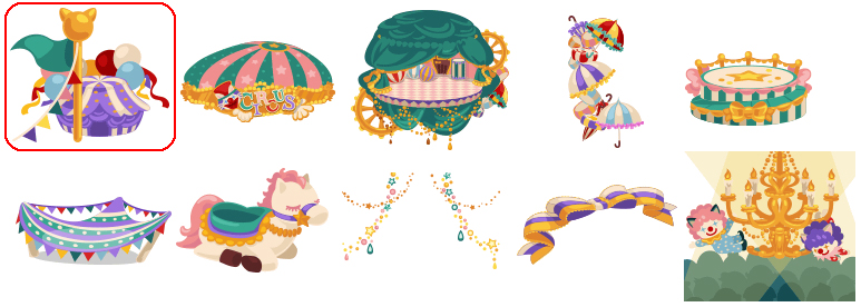 ★にゃんこのミニテント にゃんこサーカスの丘 にゃんこサーカスコロニー パラソルショーステップ スターのお立ち台 ピエロのハンモック ピンクポニーのトイレ スターテントライト リボンのキャットラン シャンデリアショー