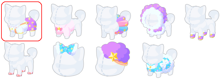 ★スターボトムスコーデ 雲のふかふかジャケット 流れ星バルーンスカート ふかふかフードポンチョ ふかふか流れ星ブーツ 星のきらめきハイヒール 星空ふかふかリボン ふかふか夜空キャスケット 星空ふかふかワンピース