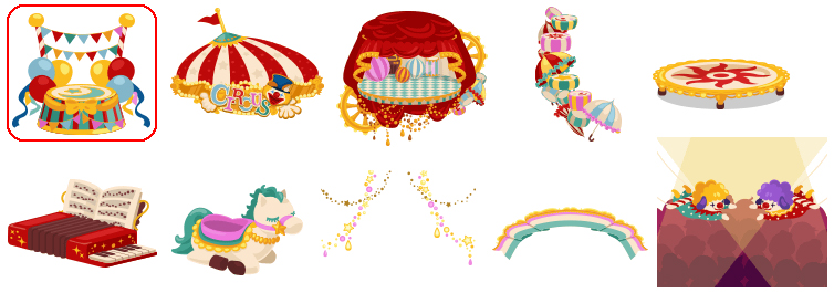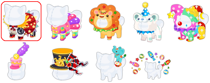 ★ピエロのお立ち台 わんこサーカスの丘 わんこサーカスコロニー キャンディショーステップ トランポリンベッド ピエロのアコーディオン ミントポニーのトイレ ショータイムライト リボンのドッグラン 空中ブランコショー