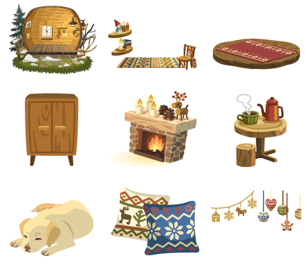 ☆あったかログハウスの星 ☆ノルディック雑貨の階段 ノルディック絨毯の丘 北欧クローゼットのドア 北欧のあったか暖炉 あったかティーセット 暖炉の側でおやすみわんこ ノルディッククッション ノルディックの吊り飾り