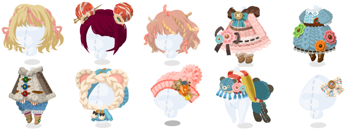 【ピックアップガチャで復刻】 ・2018.12.08〜2018.12.17 『ぬくぬくあったかウィンター』 (毛糸ゆりかごベッド・あみあみあみぐるみ ・毛糸あみあみセミロング ・あみあみガーリーワンピ・あみあみくまパーカ・あみくまマフラーリュック) 【イベントで復刻】 ・ 2019.11.30〜2019.12.15『ポケコロクリスマス』 ・2021.12.28〜2022.01.07 『ぽけころ祭〜年越し冬祭り〜』