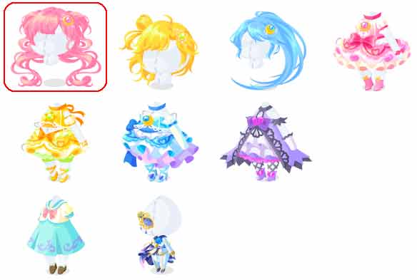 ★ピュアリィサニーアイ(顔パーツ) ☆ピュアリィスターアイ(顔パーツ) ☆ピュアリィムーンアイ(顔パーツ) ☆ピュアリィハートに変身! 元気いっぱいスマイル(顔パーツ) みんなをサポート!クルン ときめきマジカルステッキ ときめきオーロラブローチ ときめきプリズムリボン