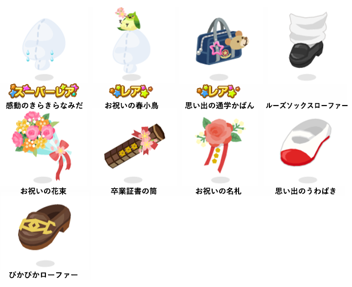 ★感動のきらきらなみだ ☆お祝いの春小鳥 ☆思い出の通学かばん ルーズソックスローファー お祝いの花束 卒業証書の筒 お祝いの名札 思い出のうわばき ぴかぴかローファー