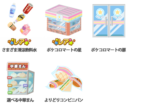 ☆さまざま清涼飲料水 ☆ポケコロマートの星 ポケコロマートの扉 選べる中華まん よりどりコンビニパン