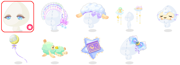 ★メルヘンドリームの壁 ☆夢見る木馬 ☆ひつじと眠る雲ベッド ☆月の浮かぶスタードーム メルヘンドリームの床 まどろむロッキングチェア 風船と星かごのトイレ うとうと雲ひつじ 夢の始まる本棚