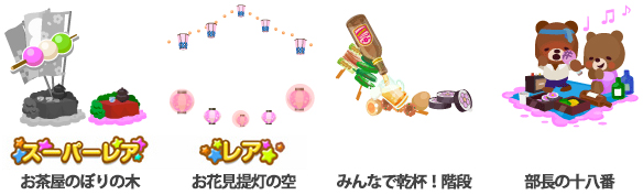 ★お茶屋のぼりの木 No.351 宴会手まり寿司三色団子の実 ☆お花見提灯の空 みんなで乾杯!階段 部長の十八番