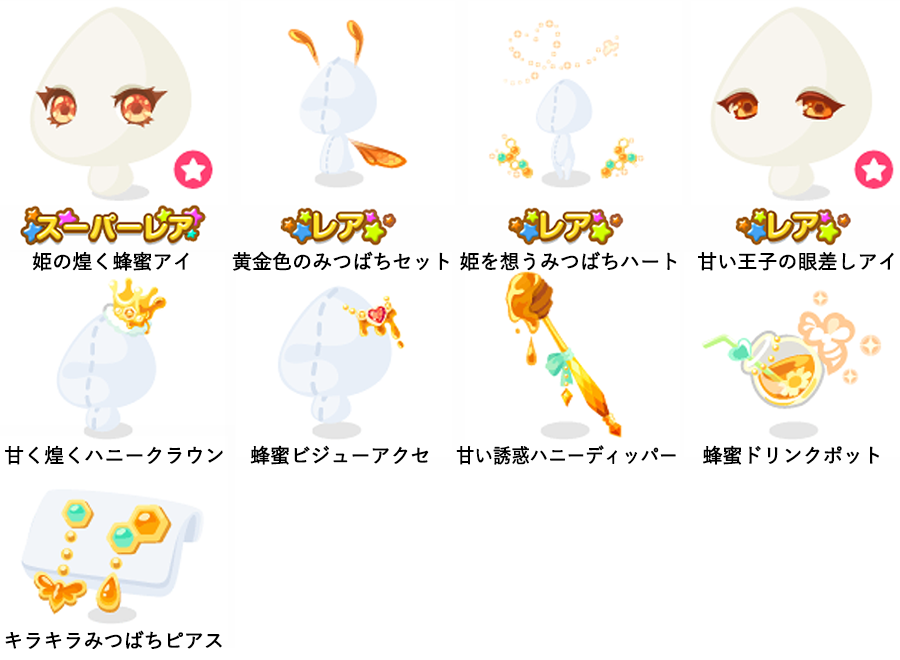 ★姫の煌く蜂蜜アイ(顔パーツ) ☆黄金色のみつばちセット ☆姫を想うみつばちハート ☆王子の甘い眼差しアイ(顔パーツ) 甘く煌くハニークラウン 蜂蜜ビジューアクセ 甘い誘惑ハニーディッパー 蜂蜜ドリンクポット キラキラみつばちピアス
